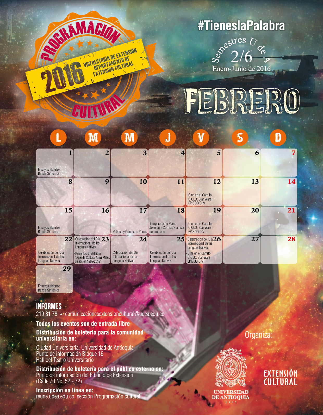 Gárces Velasco, V. (2016). Programación Cultural. Agenda Cultural Alma Máter, (228). Recuperado a partir de https://revistas.udea.edu.co/index.php/almamater/article/view/25763
