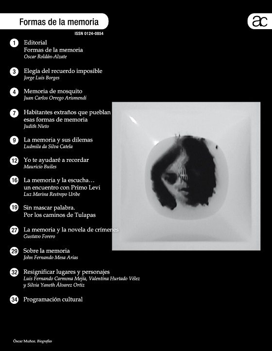 Cuando los artículo o fotografías son extraídos de otras publicaciones, se intenta contactar a los autores para su autorización. En caso de que dicho contacto no resulte posible, se publica el material con base en el artículo 32 de la ley 23 de 1982, dado el carácter académico de la distribución gratuita de la Agenda Cultural.