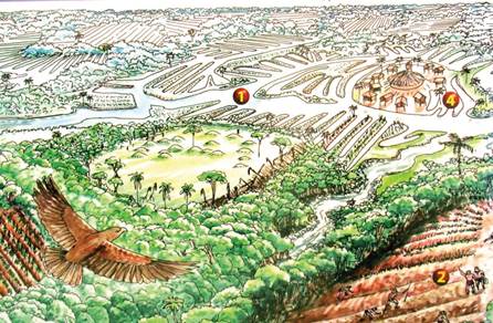 Malagana, estructuras de tierra, canales de drenaje, estructuras defensivas, guerra, funciónResumen