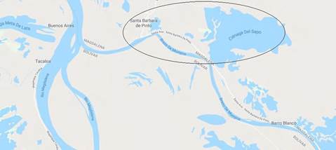 Ubicación espacial del área de trabajo en el Brazo del Mompox.