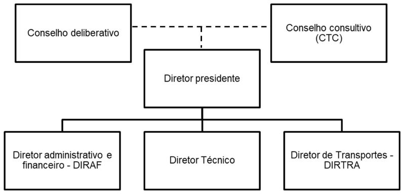 A alteração impactou a estrutura executiva do órgão, que possuía três diretorias e passou a ser composta por quatro, conforme o gráfico 4. A nova estrutura passou a vigorar somente em junho de 2022 e, a reformulação, inseriu novas atribuições e distribuições de funções. A Diretoria de Operações (antiga Diretoria Técnica), era responsável por todos os municípios da RMTC, alterando, para responsabilizar–se somente pelos maiores municípios que compõem do quadro acionário: Goiânia, Aparecida de Goiânia e Senador Canedo.