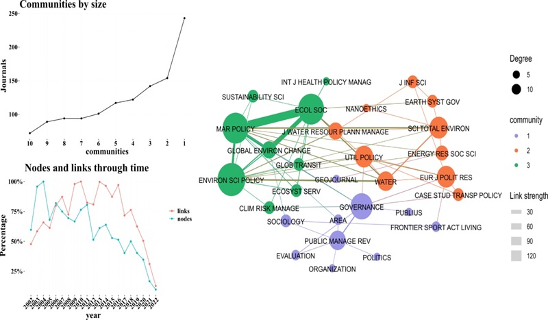 Una de las principales contribuciones de este análisis es visibilizar las zonas de contacto —y también de tensión— entre la noción de gobernabilidad, entendida como capacidad institucional y desempeño gubernamental, y la de gobernanza, orientada hacia arreglos colaborativos, horizontales y participativos. Si bien ambas han evolucionado como corrientes parcialmente autónomas, el análisis de sus redes de citación y coautoría sugiere una creciente convergencia, especialmente, en campos aplicados como la gestión de recursos naturales, la gobernanza ambiental y los sistemas socioecológicos.