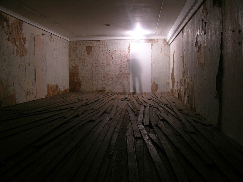 | Artista invitado Mauricio Cardona Rivera Deconstrucción Instalación con papeles de colgadura, piso de madera y bombillas eléctricas Dimensiones variables 2006 |