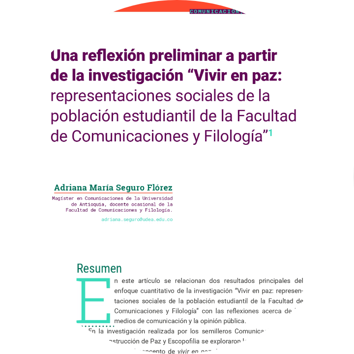 Una reflexión preliminar a partir de la investigación “Vivir en paz: representaciones sociales de la población estudiantil de la Facultad de Comunicaciones y Filología”
