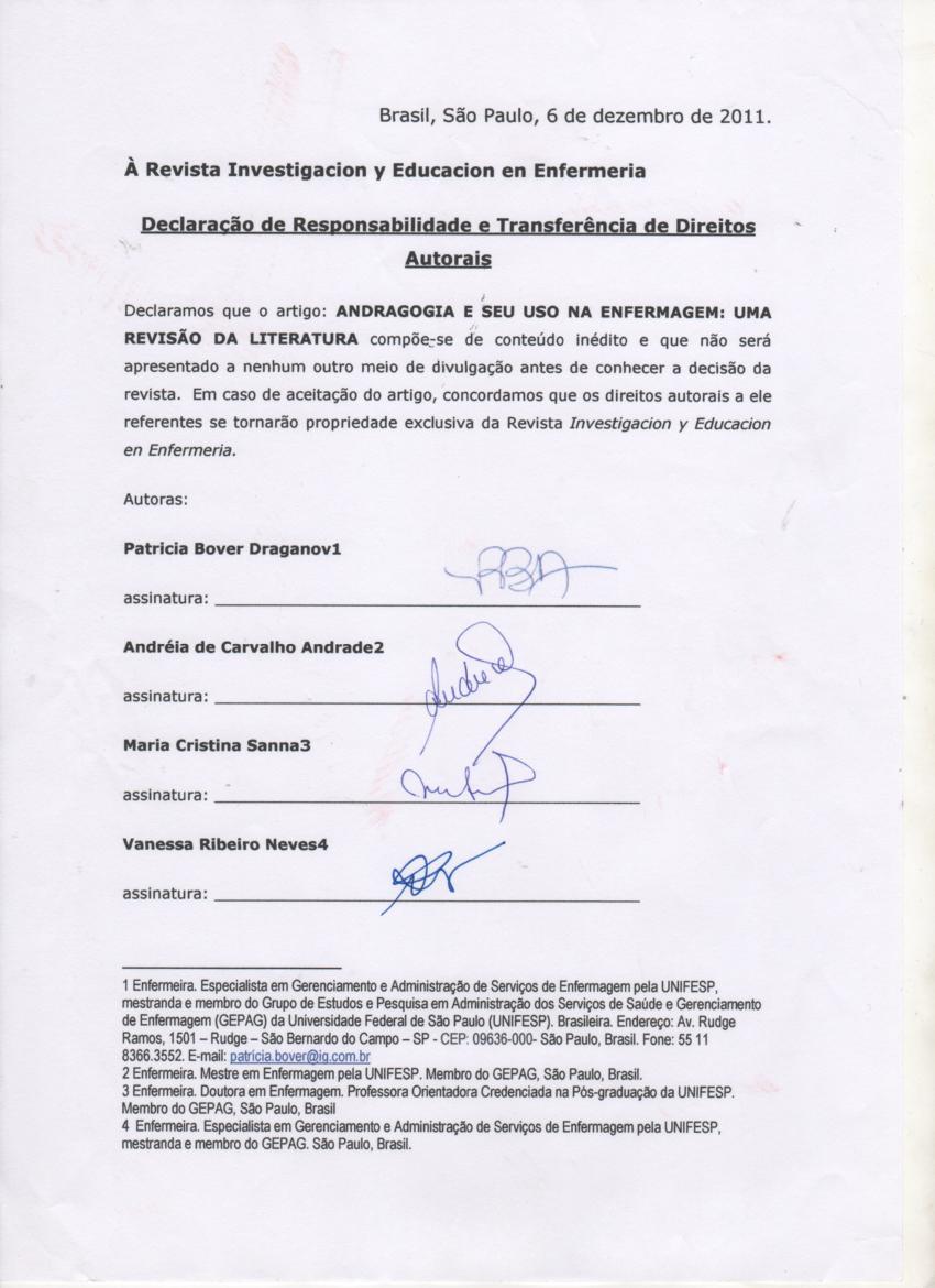 • Andréia de Carvalho Andrade RN, Ph.D. candidate. UNIFESP, Brazil. email: [email protected].