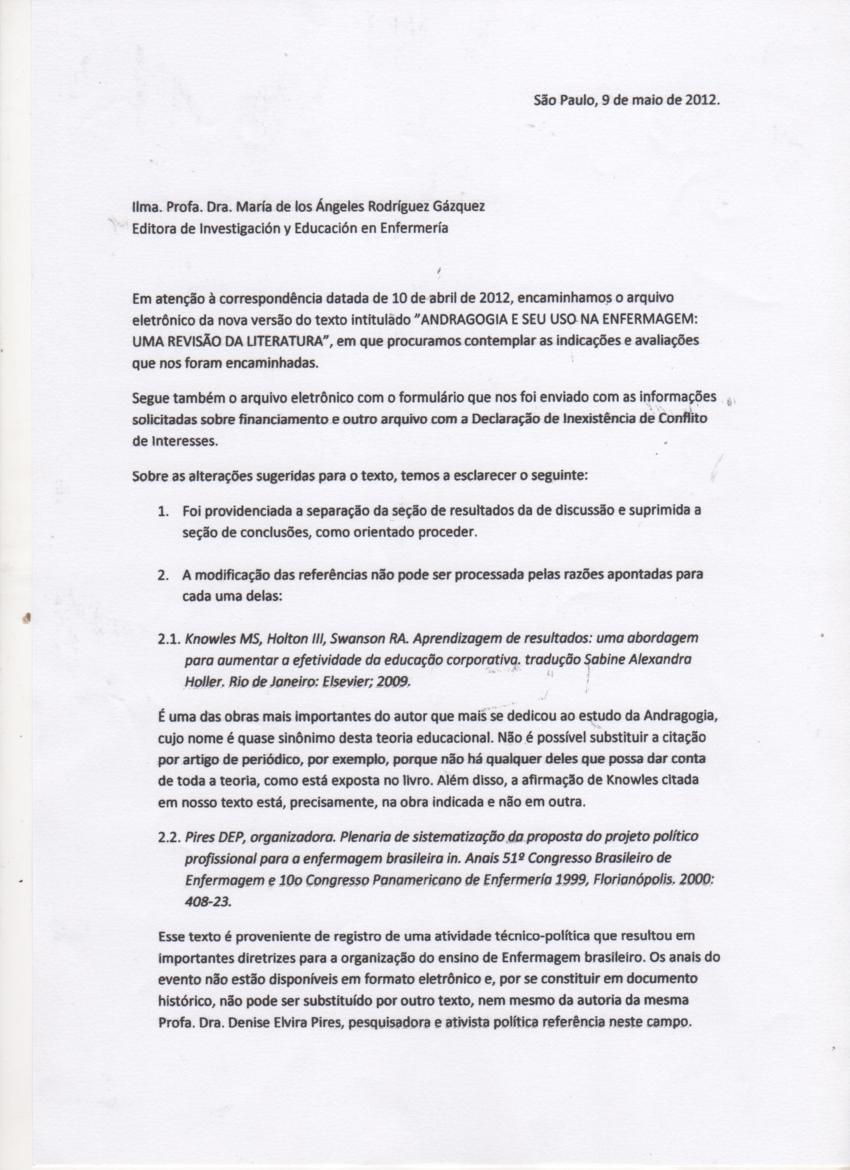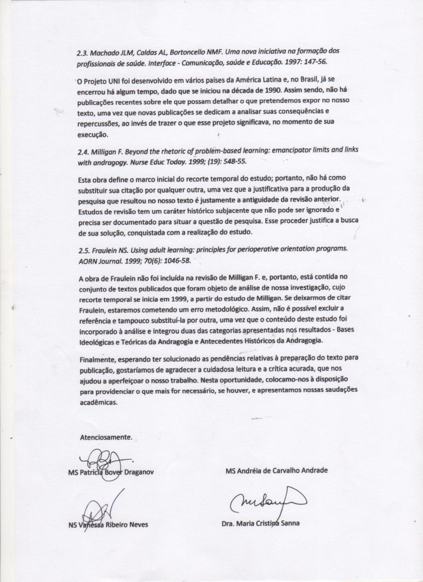 (2) Draganov PB, Friedlander MR, Sanna MC. Andragogia na saúde: estudo bibliométrico. Esc Anna Nery. 2011; 15(1): 149-56.