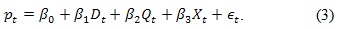 Empíricamente, la demanda indirecta se puede formular como una función de las variables de interés más un término de error, denotado por εt, de modo que en el momento t, el comportamiento del precio observado se puede escribir como: