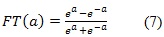 Algunas de las funciones de activación más comúnmente utilizadas en las aplicaciones con RNA, son la FT lineal, para la cual el valor de salida es igual al valor de entrada; y la FT tangente hiperbólica sigmoidea (Tansig), la cual entrega un resultado numérico entre -1 y 1, que es calculado con la expresión (7) (Haykin, 1994).