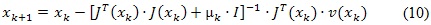 En donde J es el jacobiano, I es la matriz identidad, µk es la tasa de aprendizaje.