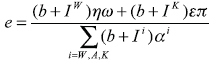 (b + IW)ωe (b + IK)πe = (b + IW)αW + (b + IA)αA + (b + IK)αK (22)