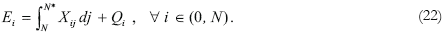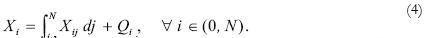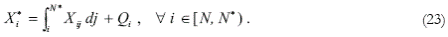 The equilibrium conditions of the goods markets are given by equations (22) and (23). Equation (22) is the equilibrium condition between the exports of the i-th good from the South and the imports of the same good from the North [i ∈ (0, N)]. These imports are divided between intermediate imports for production of intermediate goods, Xij, and imports for the final good activity, Qi,