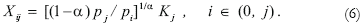 Note that price equations (31) and (32) collapse into equation (7) when the factor price, r, is equalized across countries, i.e. when θ = 1. It is convenient to define the expression between squared brackets in equation (32) as: