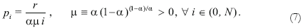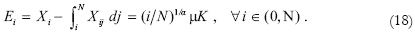 Notice that relative prices are fixed: pi/pj = j/i. Given the externalities from diversification, sectors with higher backward economic integration (higher i) enjoy higher productivity and thus produce cheaper goods. If the final good is taken as numeraire, pY = pN = 1, the factor price is determined as r = αμN, and the relative price structure is given by: