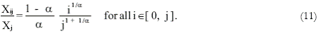 where Xj is the gross output of good j, Kj is the capital of sector j, and Xij is the intermediate consumption of good i in sector j (i ≥ j).