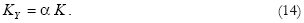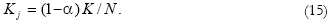 The remainder, (1–α)K, is evenly distributed among the intermediate-goods sectors. This result is obtained by substituting equations (12) and (13) into equation (8):