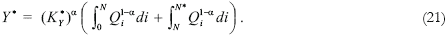 Equation (21) is the final good technology which is identical to the technology of the N*-th intermediate good