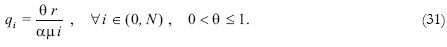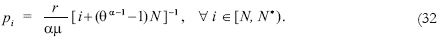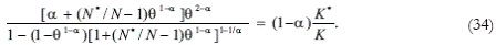 the Northern factor remuneration is determined as r = A[N* + (θ 1-α – 1) N], where A ≡ αμ. Hence, given the price structure of Southern goods [equation (31)], and the Southern exports function [equation (18)], it is possible to define the Southern purchasing power in terms of the final good: