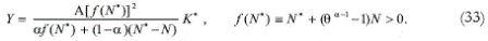 The next task is to determine the North output. The aggregate production function of the North is deduced in Appendix 6: