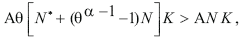 which is true as the left-hand side expression is higher than 1 (remind that α is a positive fraction), and θ is lower than 1, Q.E.D.