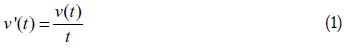 Esta ecuación señala que el crecimiento marginal del volumen de biomasa (v') que es una función del tiempo (t), es igual al volumen promedio entendido como el cociente entre el volumen y el período de tiempo que se considere (años o décadas). Esta igualdad ocurre en el punto donde se cortan ambas curvas como se muestra en el panel inferior del gráfico 1.