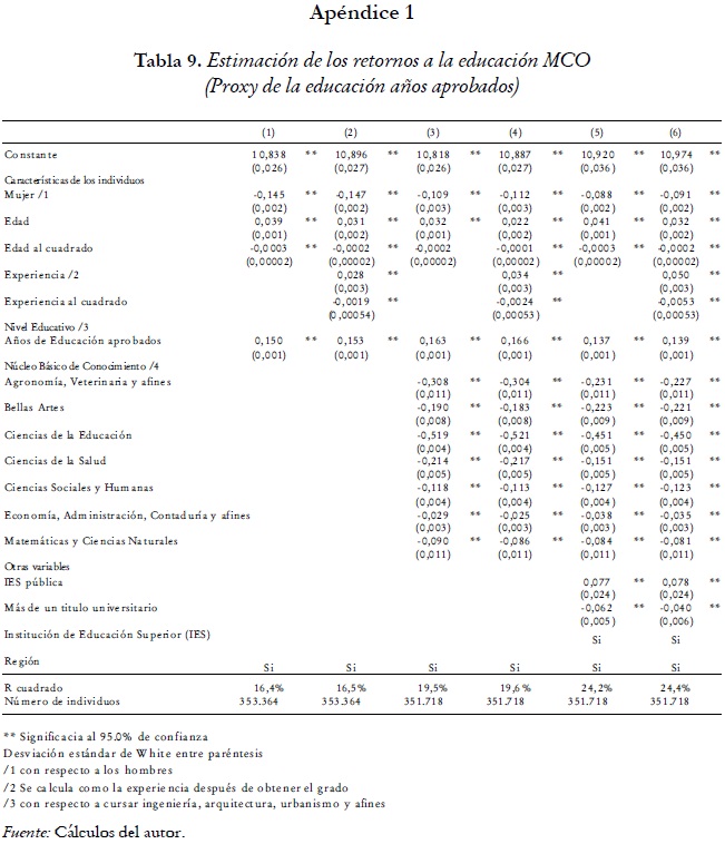 Este trabajo fue realizado por medio del crédito TAL del Banco Mundial concedido al Vice-Ministerio Técnico del Ministerio de la Protección Social. Se agradece al Observatorio Laboral de Educación del Ministerio de Educación Nacional por el suministro de la base de datos, además de los comentarios de Carlos Esteban Posada, Manuel Ramírez y Jaime Tenjo, así como a los dos evaluadores externos. El autor era consultor del Vice-Ministerio Técnico del Ministerio de la Protección Social. Los comentarios y errores son responsabilidad única del autor y no comprometen a la entidad mencionada.