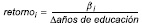 donde Δ años de educación es la diferencia entre los años de educación del título obtenido con respecto a obtener un título universitario. Esto es, para una carrera técnica se toma alrededor de dos años de educación mientras que para un título universitario cinco años, entonces el cambio es de tres años.