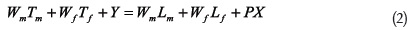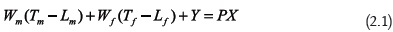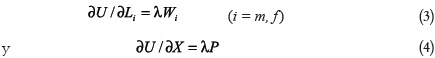 Donde λ, el multiplicador lagrangiano, es interpretado como la utilidad marginal de la renta para la familia. La ecuación (3) permite soluciones de esquina, esto es, de casos en los que Lies igual a Ti, al menos para algunos de los miembros i de la familia. Resolviendo el sistema de ecuaciones resultante, se obtienen las ecuaciones de demanda de ocio de los i miembros de la familia: