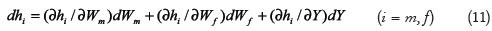 Finalmente, siendo p el precio de los bienes de consumo como se mencionó, si se asume que dp = 0, entonces la derivada total de la función de oferta de trabajo de uno de ellos es: