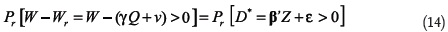 donde Z es el conjunto de variables observables mencionadas, β es el vector de parámetros a estimar y e es un término de perturbación, que recoge las características inobservables que afectan la decisión de participar.