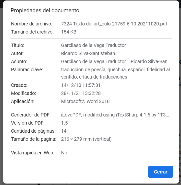 |Resumen = 494 veces | PDF = 141 veces| | PDF (ENGLISH) = 43 veces| -