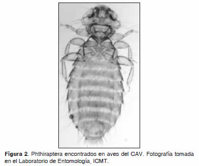 A las aves ingresadas al CAV un equipo de médicos veterinarios les realizó examen clínico al momento de su llegada, posteriormente procedieron a la identificación taxonómica de cada ejemplar de acuerdo a la clave de Hilty y Brown (1986). A cada ave se le hizo una revisión minuciosa de la condición del plumaje y de la presencia de ectoparásitos, levantando las plumas de las diferentes zonas del cuerpo. Adicionalmente se observó el cálamo, raquis y las bárbulas de las plumas de la cabeza, cuerpo, alas y cola. Los artrópodos ectoparásitos encontrados se colectaron con pinzas entomológicas, fueron colocados en viales con etanol al 70%, los cuales estaban debidamente rotulados y separados por especies de aves y transportados al laboratorio de entomología del ICMT-CES, para su posterior identificación.