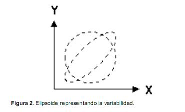 1. Sean dos nubes de puntos (representadas como en la figura 2 por elipsoides que las rodean). La varianza es una medida de la dispersión. Las variables X, Y tienen ambas la misma varianza en el caso de la elipse y del círculo, pero la covarianza en el círculo es cero y la de la elipse es más o menos alta, y positiva.