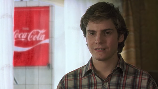 Nota. Alex sonríe con nerviosismo mientras una cortina se abre y deja ver un cartel de Coca-Cola, un símbolo del capitalismo occidental que intenta ocultar a su madre para mantener viva la ilusión de la RDA. Extraída de Wolfgang, 2003, 1:02:56