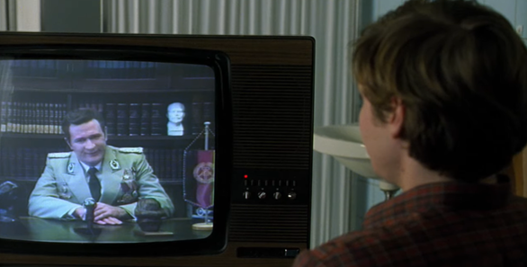Nota. Alex observa el discurso de Sigmund Jähn, quien despide el proyecto de la RDA, marcando el fin de una era. Obtenida de Wolfgang, 2003, 1:52:20